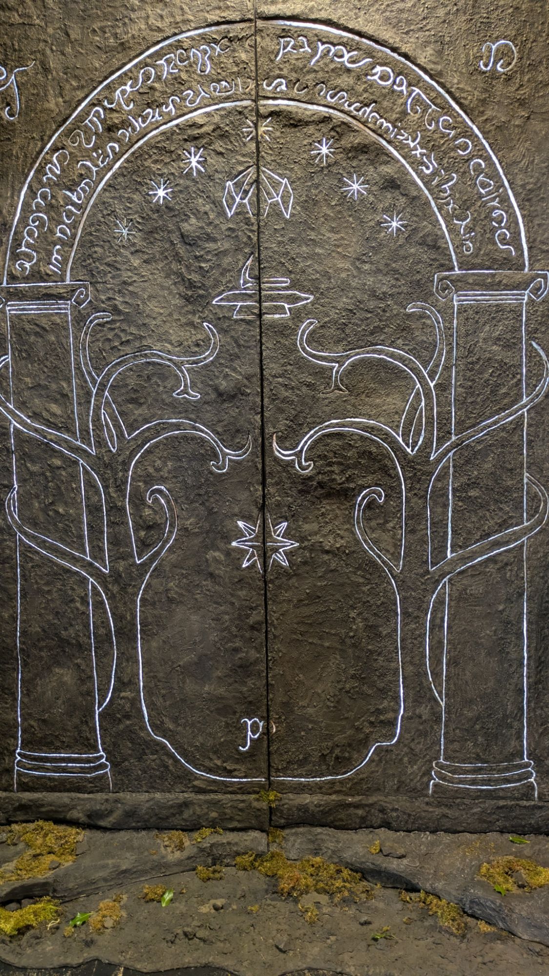 Parmi les pièces phares, vous découvrirez les costumes des Nazgûls à taille réelle, impressionnants de réalisme, ainsi qu’une reproduction grandeur nature de la Porte de la Moria, l’un des lieux les plus emblématiques de la saga.